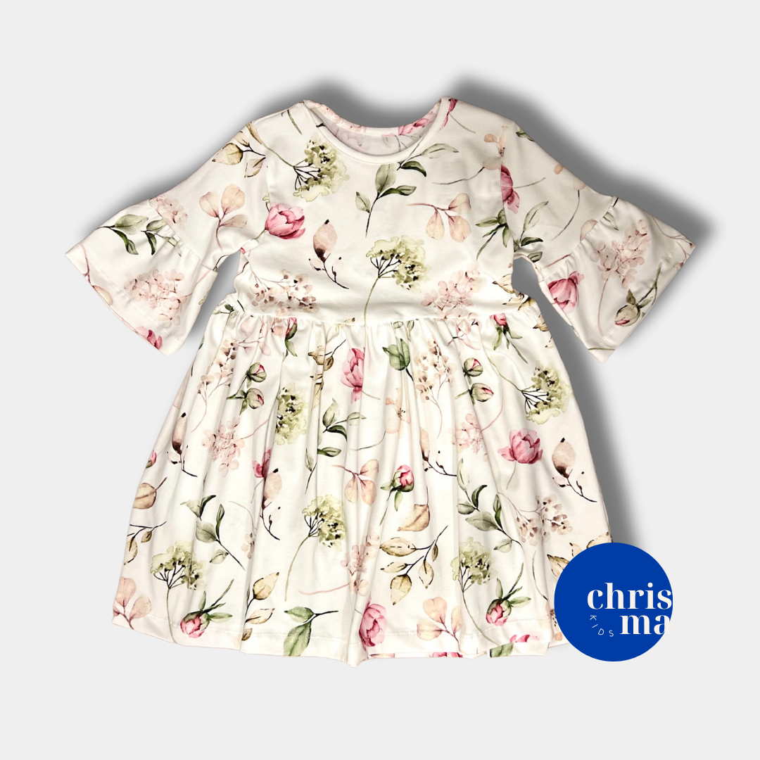 Witaj w naszym świecie kwiatowej magii! Nasza sukienka z wiosennymi kwiatami to czysta poezja natury, zamknięta w eleganckim kroju. Przeniesiemy Twoje dziecko w bajeczny ogród pełen barwnych kwiatów, gdzie każdy krok jest tańcem na kwiatowych polanach.